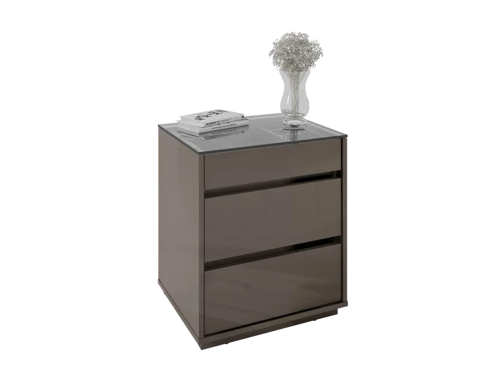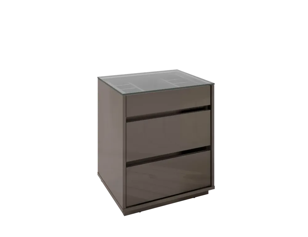 O Criado Belize é ideal para o seu quarto! Ele possui 3 gavetas sendo que a superior possui um organizador interno para joias, relógios, etc, feito em MDF. As gavetas possuem corrediças telescópicas. Tampo feito de vidro, base e laterais feitos em MDP de 25mm, e possui 3 travessas transversais em MDP de 15mm que garante maior estabilidade e resistência à estrutura.