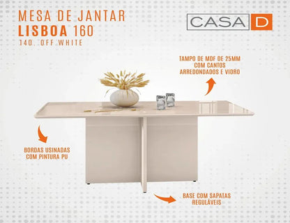Conteudo da Embalagem: 01 - Mesa Lisboa C/Vidro 1,60x0,90m ; 01 - Manual de Montagem Detalhado