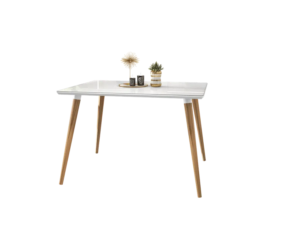 A Mesa Veneza é o que falta em sua Sala de Jantar! Com designer moderno ela irá agregar muito charme e requinte ao ambiente. Tampo em MDF de 25mm usinado com cantos e borda arredondados com vidro de 4mm lapidado. Suporte para fixação dos pés em aço, especialmente desenvolvido para garantir maior estabilidade da mesa. Pés são feitos em madeira maciça o que proporciona ainda mais resistência e qualidade à mesa. Cada pé possui uma sapata protetora de silicone para garantir que a mesa não risque o piso no qual for instalada. Suporta 4 lugares! Sua pintura com acabamento Print Wood, patenteado e exclusivo Casa D garante ao produto maior qualidade e durabilidade como nenhuma no mercado possui.