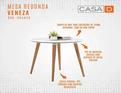 Conteudo da Embalagem: 01 - Mesa Veneza Redonda 0,9m ; 01 - Manual de Montagem Detalhado