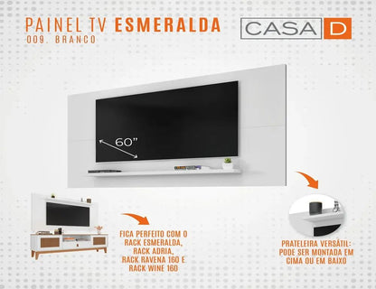 O Painel uma pea chave de qualquer sala de estar e continua em alta para casas e apartamentos, o mvel ideal para voc instalar sua TV, colocar seu Home Theater, DVD, videogame e outros aparelhos eletrnicos. O Painel Esmeralda suporta TVs de at 50 polegadas. Produto elaborado em MDP, pintura conta com acabamento Print Wood, patenteado e exclusivo Casa D. E ainda possui 1 prateleira.