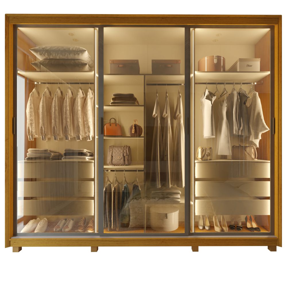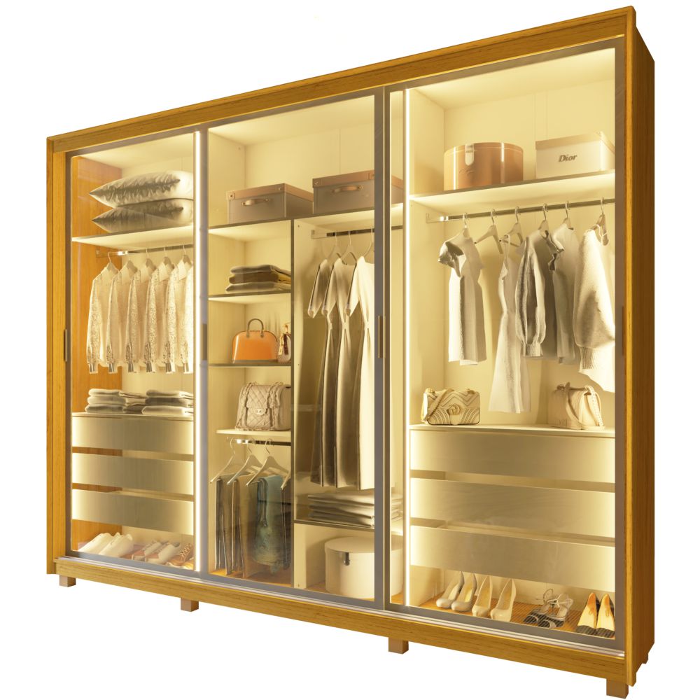 O Roupeiro Platinum 3P da Gelius Móveis é a combinação perfeita entre inovação, design e funcionalidade para o seu quarto. Produzido 100% em MDF, este móvel traz um visual moderno e sofisticado com portas deslizantes em vidro Reflecta, acabamento com requadro em alumínio e iluminação em LED de cor quente nas laterais e divisórias, valorizando ainda mais o ambiente.